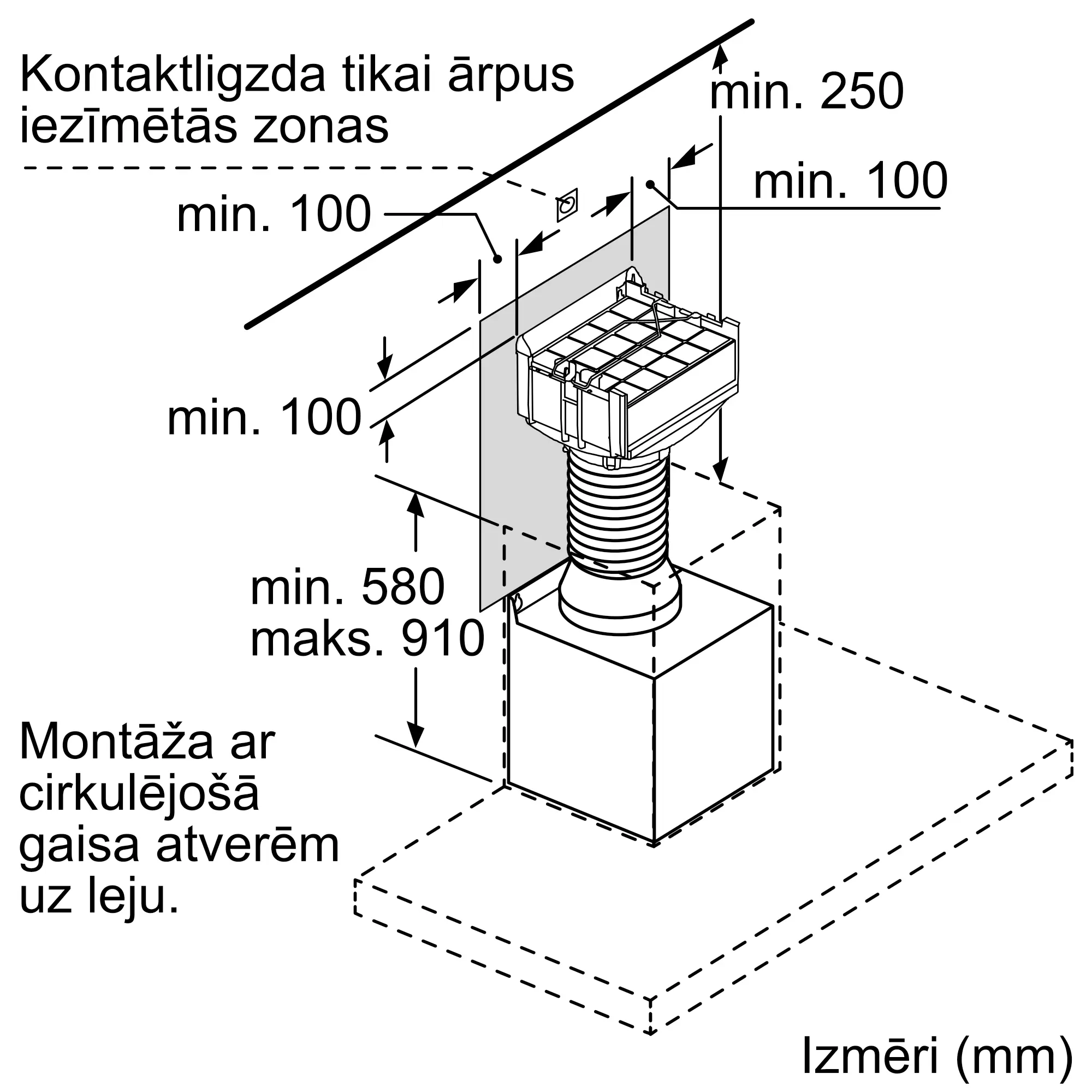 Apvienojumā ar pie sienas uzstādāmiem dūmvada tvaika nosūcējiem