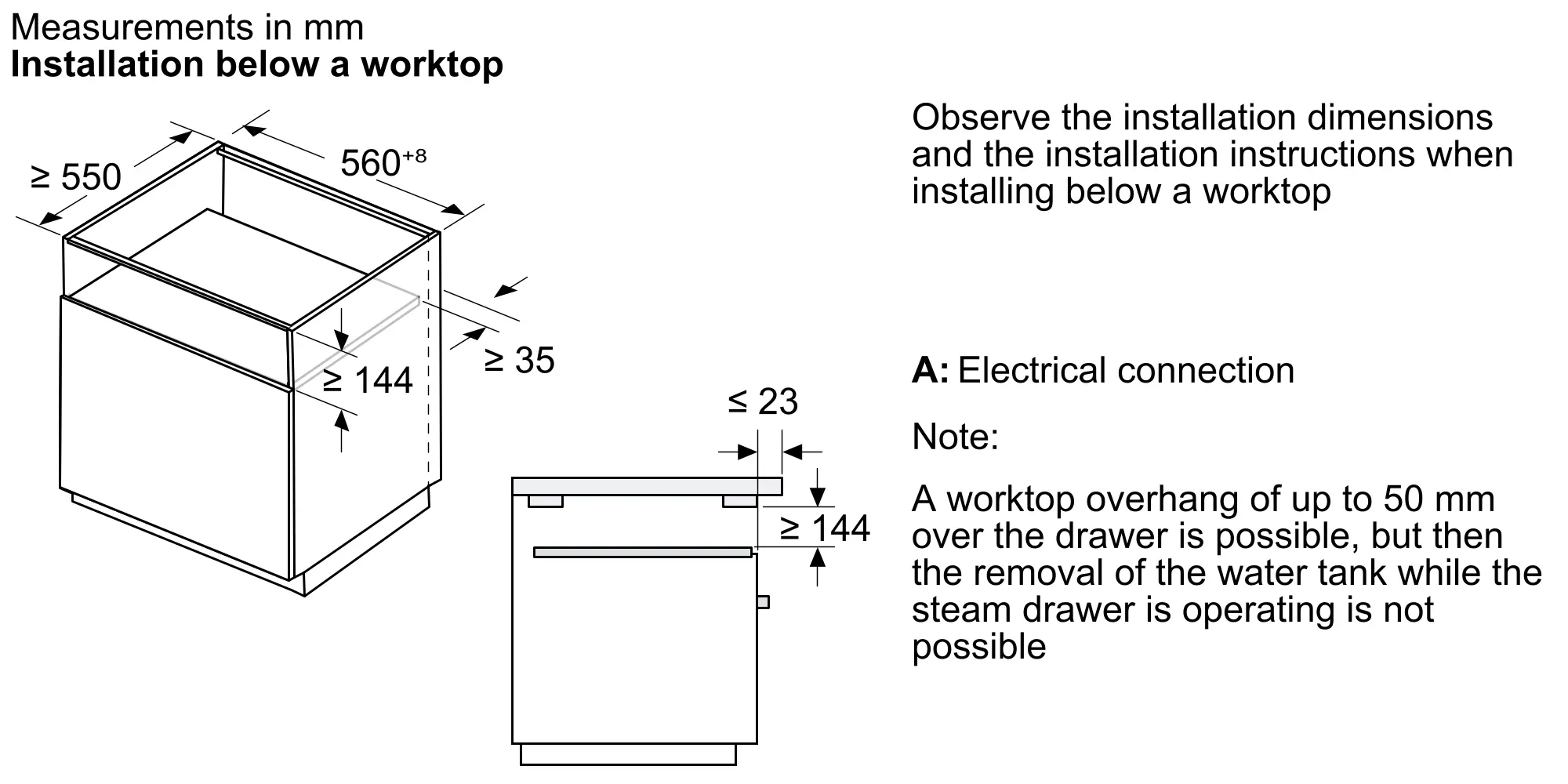 Sērija 8 Tvaika atvilktne 59 x 14 cm Melns